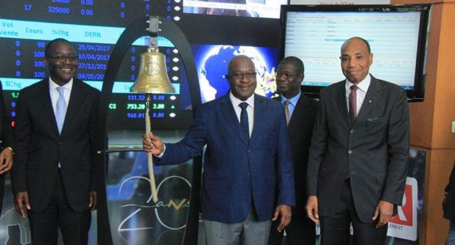 Le Directeur général adjoint du Trésor et de la Comptabilité Publique, LassinaFofana a procédé au nom de son directeur général au lancement officiel la première cotation en bourse de l'Emprunt Obligataire TPCI5,90%2016-2026 ce vendredi 05 mai au siège de la Bourse Régionale des Valeurs Mobilières à Abidjan-Plateau.