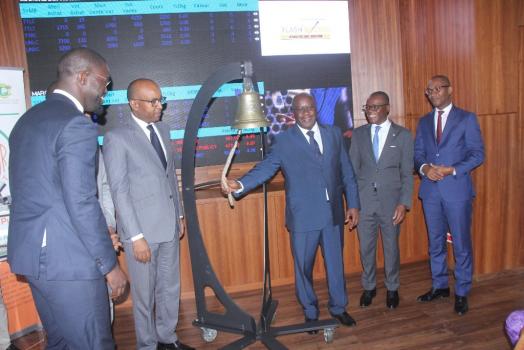 Les emprunts obligataires TPCI 5,95% 2017-2024 tranche A et TPCI 5,95% 2017-2024 tranche B ont fait, ce vendredi 6 avril 2018, leur introduction à la cote de la Bourse régionale des valeurs mobilières (BRVM), d’un montant global de 298,667 milliards Fcfa, soit 149% du montant total demandé. Les résultats de cette première cotation, livrés par le directeur général adjoint du Trésor et de la comptabilité publique, Laciné Fofana, ont donné, pour la tranche A, TPCI 025, un volume échangé de 1000 actions, au coût nominal de 10 000 Fcfa, soit un montant de 10 millions Fcfa. La tranche B, TPCI 026, a enregistré un volume échangé de 402 actions, soit un montant de 42 millions Fcfa. Ce qui porte à 14 millions le montant global des transactions enregistrées pour ces deux titres sous le coup de 9h 45 mn.
