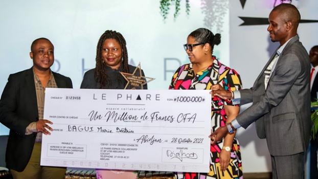 Les lauréats de la première édition des « Prix du phare » qui a pour objectif de reconnaitre le mérite entrepreneurial en Côte d’Ivoire sont connus. Ils ont été récompensés le jeudi 28 octobre 2021, à la Riviera Bonoumin, au cours d’une cérémonie qui a enregistré la présence de la directrice de cabinet du ministre de l’Economie numérique, des Télécommunications et de l’Innovation, Mme Amand Patricia Valérie Aimée. Le directeur général du Phare coworking, Mohamed Diaby, à l’initiative de ces prix, a indiqué que ces distinctions s’inscrivent dans une logique d’appui et de soutien à l’écosystème entrepreneurial. L’objectif est d’identifier, récompenser et accompagner la startup de l’année qui s’est démarquée par la pertinence de son activité et son impact sur l’économie.Pour cette édition 2021, le jury a porté son choix sur la plateforme digitale de mariages clés en main dénommée « Réaliser mon mariage. » La promotrice, Marie Béatrice Bagui qui révolutionne en Côte d'Ivoire le concept de wedding planning par le digital, enlève donc le prix de l’entrepreneur de l’année. Récompensée d’une enveloppe d’un million Fcfa et d’un hébergement durant 6 mois au Phare Coworking, elle l’emporte devant neuf autres entrepreneurs inspirants. Il s’agit d’Ermann Zannou de Green Ker qui a modernisé les solutions de cuisson traditionnelles avec ses fourneaux améliorés, d’Ismaël Malick d’Alméida, de Novate digital qui est spécialisée dans la conception et la réalisation de bornes tactiles, d’écrans digitaux et de contenus numériques. Jean-Claude Gouessé et Stéphane Assi de Moja Ride, qui déploient un système de paiement numérique dans les stations et les gares routières ont été également distingués. Tout comme Joseph Olivier Biley de Jool international, qui utilise des drones pour la cartographie de superficies, la visite virtuelle, l’épandage des phytosanitaires, la gestion à distance de fermes. Ou encore Olga Yenou, la fondatrice de Tafi, société de transformation de cacao qui commercialise de la poudre de cacao et de la pâte à tartiner ; Philippe Porquet fondateur de Colivoire express qui est une réussite dans le secteur de la logistique ; et Sara Coulibaly de Naima Dolls qui a révolutionné l’univers de la poupée. Yaya Mboua de Zencey, plateforme de santé numérique qui assure l’accès rapide et facile à une visite médicale en ligne ; et Youssouf Ballo, cofondateur de Legafrik, une plateforme qui permet aux entrepreneurs de 17 pays en Afrique de créer leurs entreprises sans besoin de se déplacer, complètent la liste des entrepreneurs inspirants. Par ailleurs, le prix de la structure d’accompagnement à l’entrepreneuriat est revenu à Orange Fab, un accélérateur de start-up qui a mis en place le concept win win.La directrice de cabinet, Mme Amand Patricia Valérie Aimée, s’est réjouie de savoir que le prix ait été attribué à une femme. Elle a indiqué que le gouvernement a compris l’importance des start-up et qu’un un texte de loi est en train d’être pris, qui se veut inclusif et véritablement favorable aux start-up qui ne seront plus « des laissés pour compte, des marginaux mais qui seront pleinement au centre du développement de la Côte d’Ivoire. »///////////// Emmanuel Akani