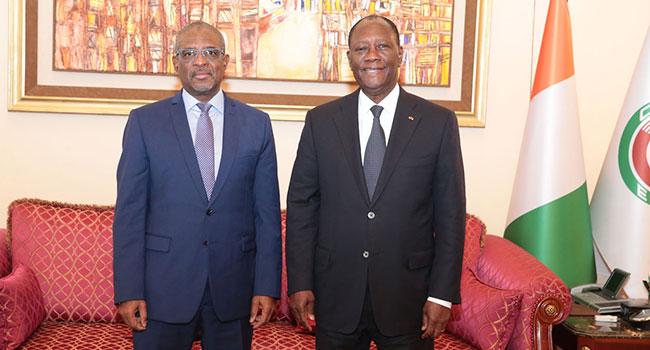 Le PreÌsident de la ReÌpublique, S.E.M. Alassane OUATTARA, s’est entretenu, ce mercredi , au Palais de la PreÌsidence de la ReÌpublique, avec le PreÌsident de la Commission de l’Union Economique et MoneÌtaire Ouest-Africaine (UEMOA), M. BOUREIMA Abdallah.